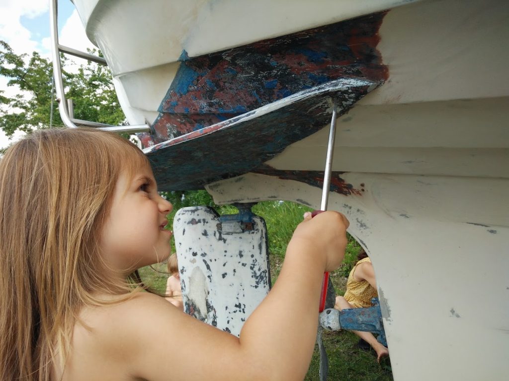 Maria skulle slibes ned og har efterfølgende har hun fået epoxy og derpå bundmaling.